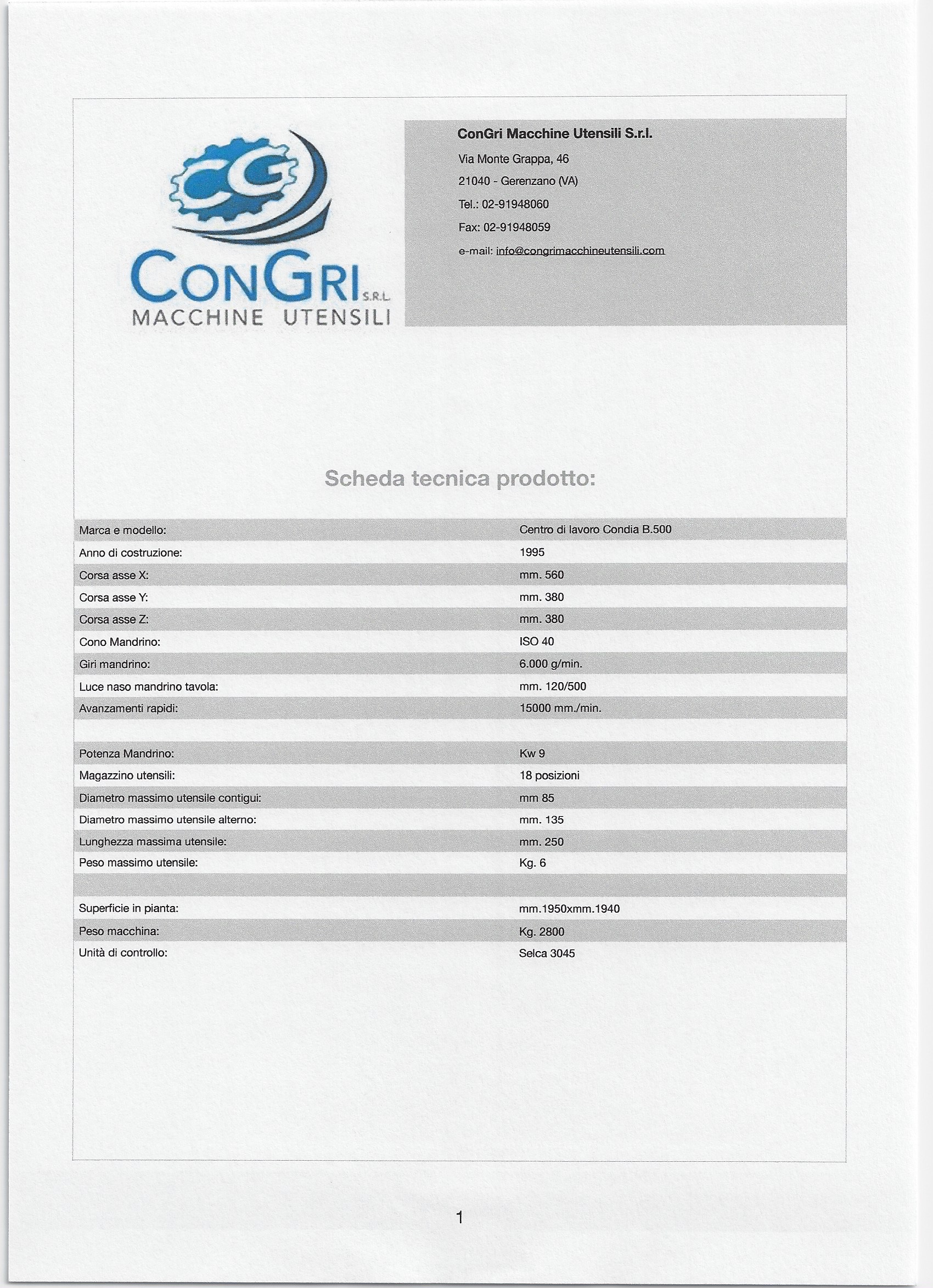 This Condia B-500 machining center is available at our headquarters. CE mark.