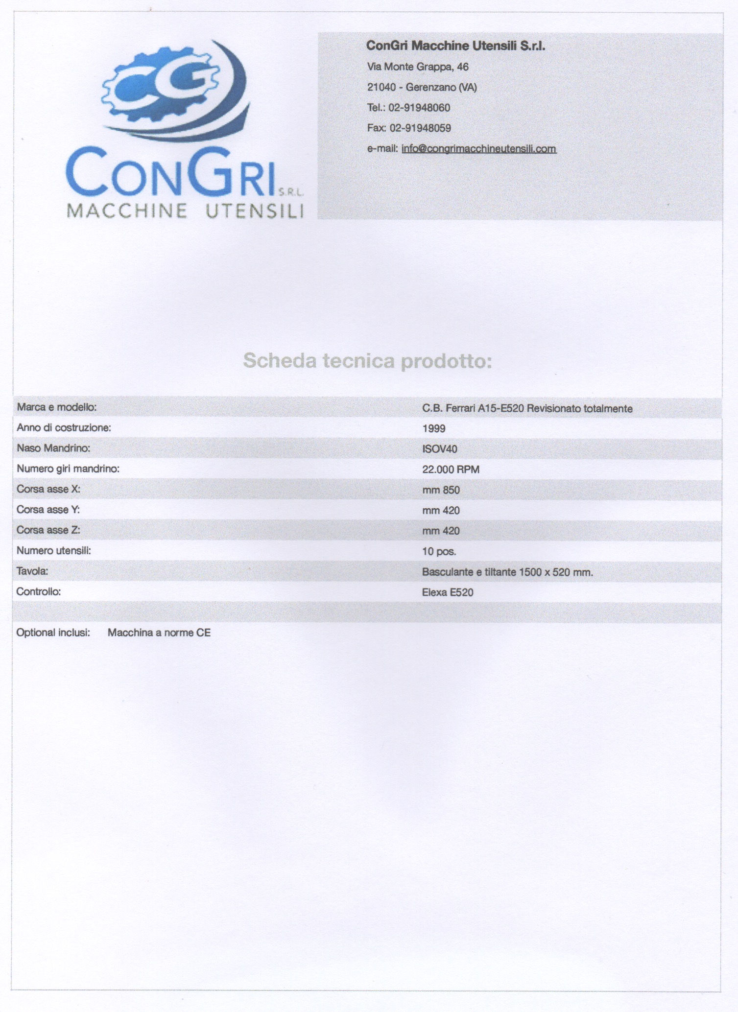 Centro di lavoro C.B. Ferrari A15-E520 revisionato a nuovo